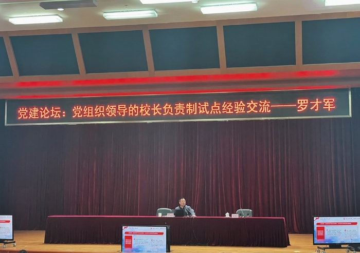 最后,罗才军书记也谈了对实施“党组织领导下的校长负责制”的未来展望。他谈到:要确保“党组织领导下的校长负责制”行稳致远,必须坚持党政协同着力,确保人民中心;发挥先锋作用,实现凝心聚力;推进创新治理,创造自我价值;凸显党建特色,展现制度优势。必须在思维转变、职权任命、身份彰显、有机融合四个方面下功夫,才能使党组织保持风清气正,使党员干部保持强大的战斗力,使全体师生凝心聚力,使学校党建蒸蒸日上。