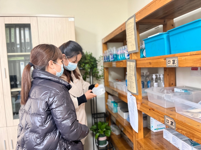 党支部根据集团实际情况,对已储备的疫情防控所需的消毒物品、洗涤用品、体温测量仪、口罩、医用防护服等物资进行清查,确保幼儿园防控物资齐全到位,为幼儿营造安全健康的学习环境!