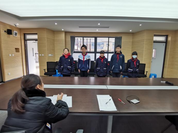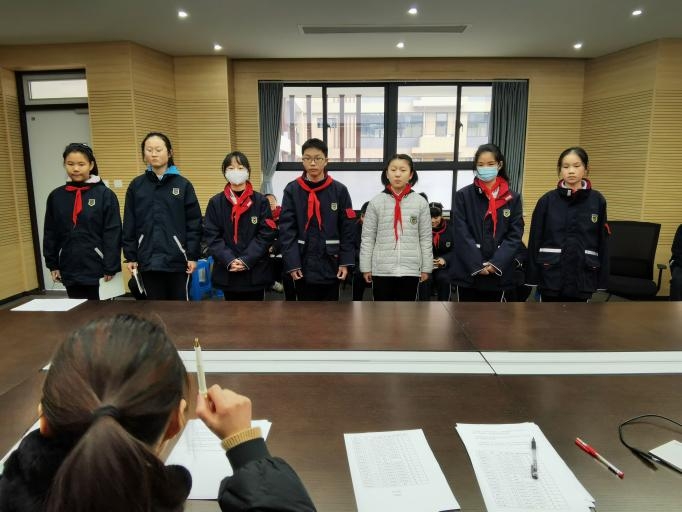 在现场考核中,面对开放性问题,如请你结合竞选岗位,谈谈如何更好地为少先队服务,他们冷静思考,沉着应答,理性地表达了对问题的看法。在回答中,我们能感受到他们表达中的“担当”和“责任”意识,他们将发挥自身特长,为学校少先队工作贡献力量。