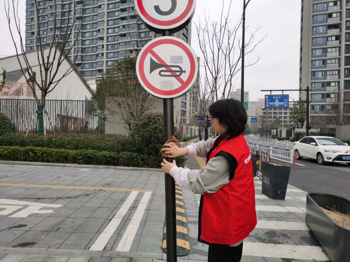 青年团员教师还自发对幼儿园内及周边环境进行卫生清整和整理工作。有的老师主动清洁摆放在道路边的共享单车,有的主动打扫幼儿园周围的道路设施,还有几名教师为幼儿园周边及社区捡拾垃圾、擦拭围栏等,他们各有分工、各司其职,干劲十足,用实际行动将助人为乐、无私奉献的“雷锋精神”传承下去。