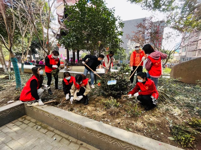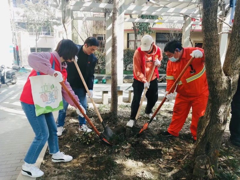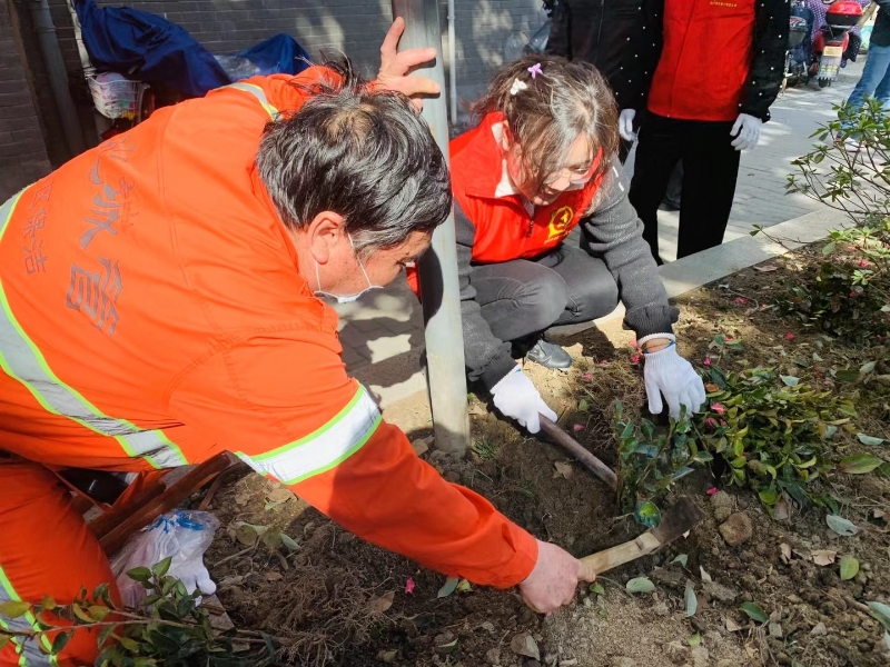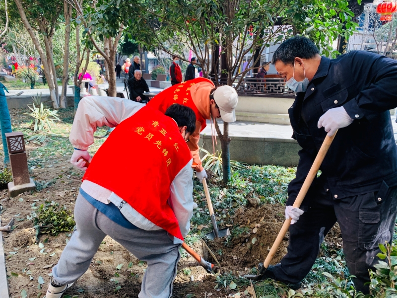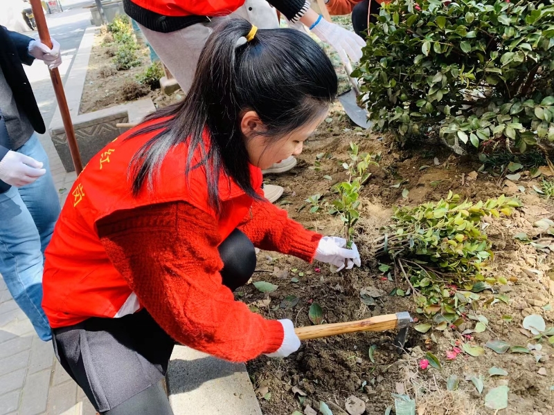 活动中,大家分工协作,修整树坑、扶植树苗、培土踩实、浇水育苗都有条不紊地进行,近百株树苗稳稳地扎根在了土壤中,挺立在王马社区的公园内,带来勃勃生机。