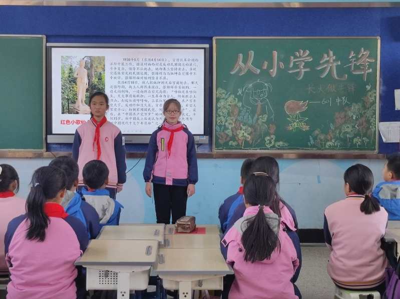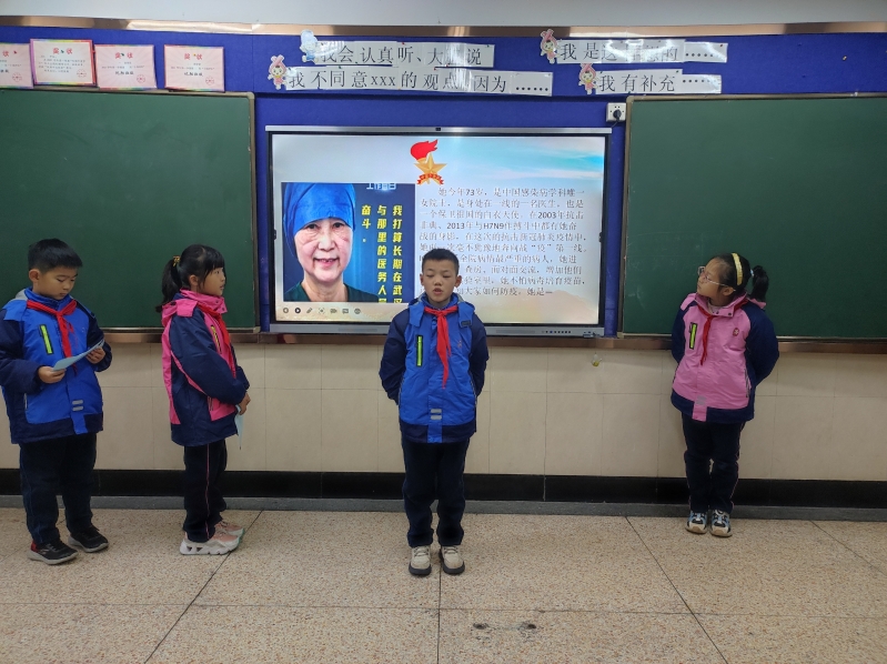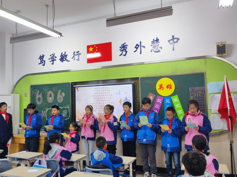 榜样的力量是无穷的,一位榜样就是一面旗帜。在中华民族五千年的历史长河中,涌现了一批又一批的英雄与榜样。从三国时期的政治军事家曹操到我们身边每一位平凡而又伟大的抗疫医护人员,奥运赛场上的运动健儿到扎根水稻田的袁隆平爷爷,从从小立志“为中华之崛起而读书”的周恩来总理到中国少年先锋队成立至今的“红领巾”们,北秀小学的少先队员们在先锋榜样事迹汲取力量,在“请党放心,强国有我”的誓言中许下对党的诺言。