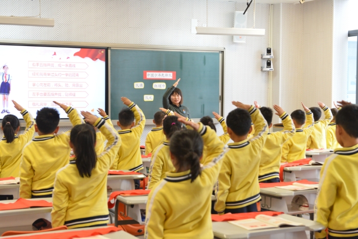接着,张月老师执教党的知识《红领巾永远跟党走》一课。张老师通过展示入队仪式将学生引入课堂,设置了“少先队员预备营”的情境,指导学生合作学习了少先队的相关知识,让学生认识到佩戴红领巾是一件非常光荣而神圣的事情,引导学生努力成为一名合格的少先队员,并坚定永远跟党走的决心。