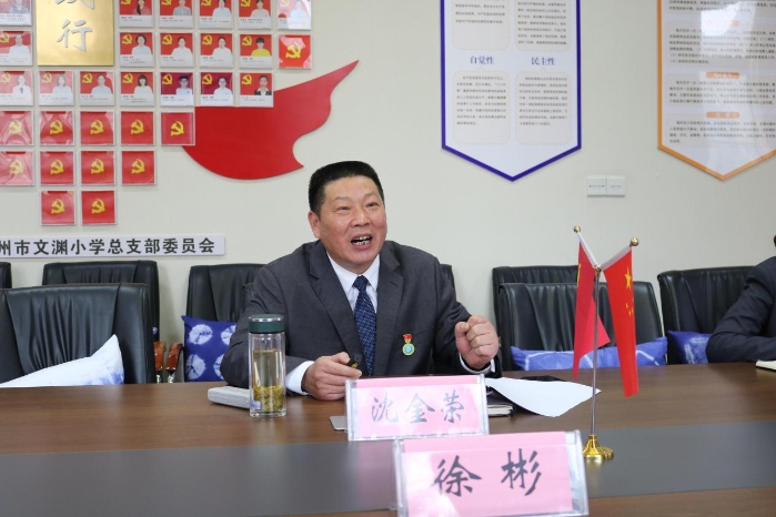 3月25日上午,中共浙江省委党校徐彬教授一行在bet188体育官网区教育局组宣科副科长李平、组宣科科员尹明的带领下走进杭州市文渊小学,开展“党组织领导的校长负责制”调研。学校党总支书记沈金荣、党总支委员德育主任严余瑛、党群办主任沈利克热情接待。